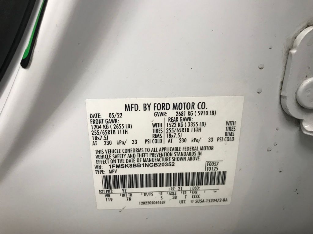 VIN: 1FMSK8BB1NGB20352